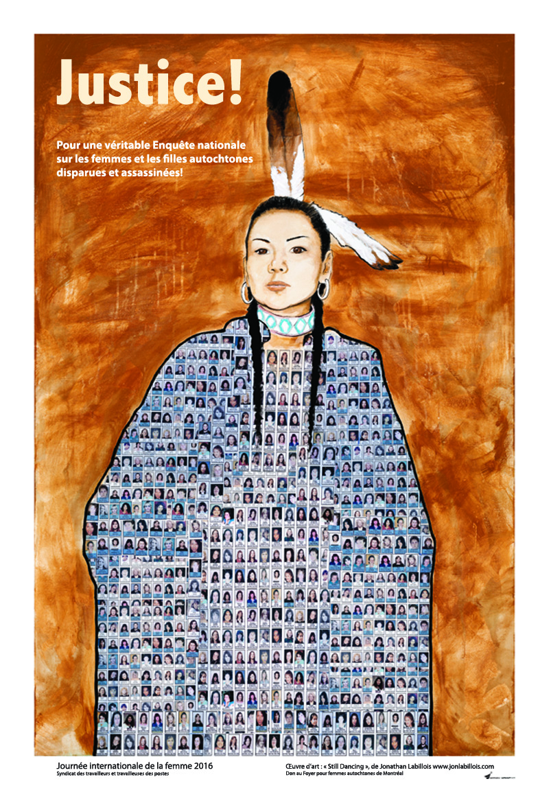 Cette année, en l’honneur de la Journée internationale de la femme, le Syndicat a conçu une magnifique affiche destinée à sensibiliser la population à la cause des femmes et des filles autochtones disparues ou assassinées.